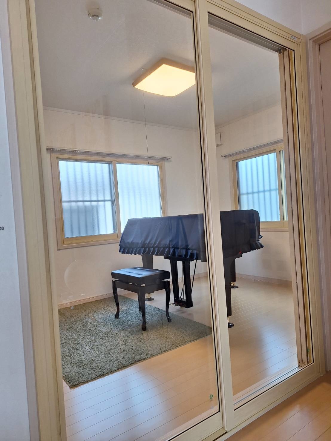 気兼ねなくピアノの練習ができ、またリビングからピアノ室への入り口がガラス張りになっていることで圧迫感もなくとても気に入っています!